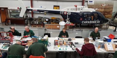 members hard at work surrounded by great Helicopter Museum memorabilia