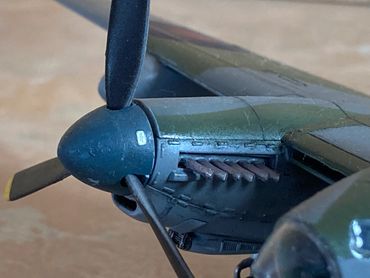 It's dressed as being from 571 Squadron, No 8 Pathfinder Group which was based at RAF Oakington in Cambs 1944.The odd grey panel on the port side is due it just having come back from repairs, they hadn't y