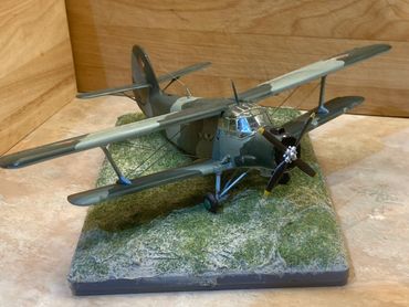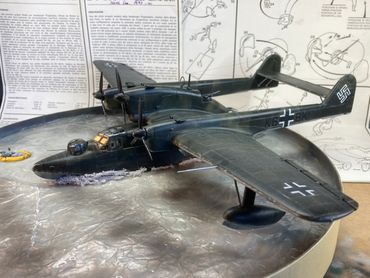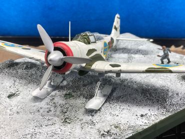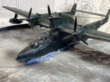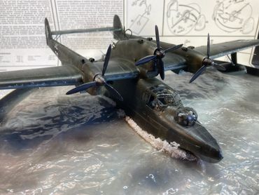 A Japanese early WW2 flying boat originally used for spotting shot landing from warships but rapidly reduced to other roles such as delivering the post. The beach is made from alpine grit and sand, the sea is done from layers of Modgpodge and varnish.