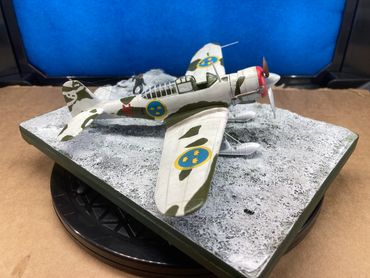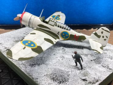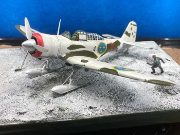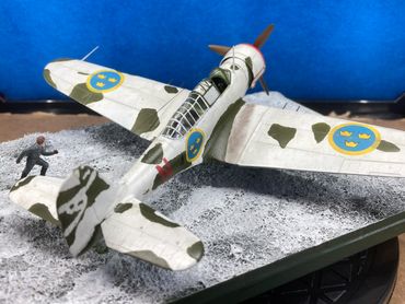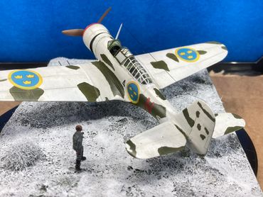 Saab B-5 built using the Special Hobby 1/72 kit with an Airfix figure and a Ferrari Rocher base plus some scratch built additions.
