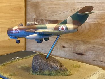 MIG15 bis - 1/72 Eduard, built straight from the box with no additional parts. The model is set on a base that could be the gate guard for a North Korean Airbase