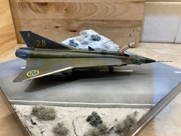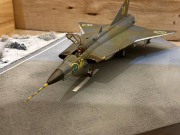 Draken operating from an improvised runway on a road. Built from the 1970s Airfix 1/72 with a scheme based on a photo.
