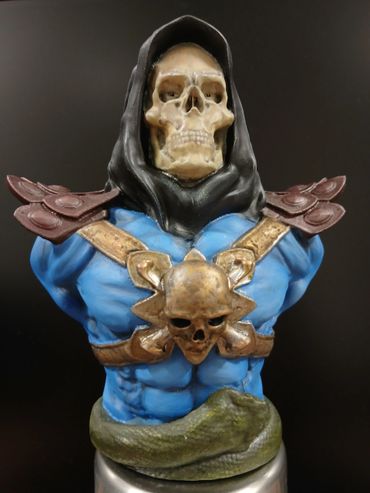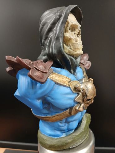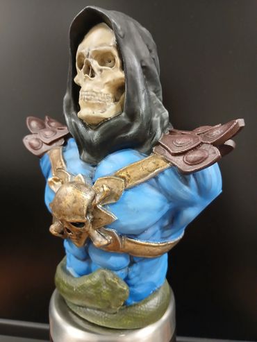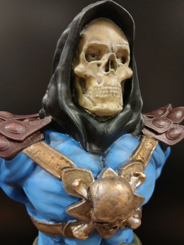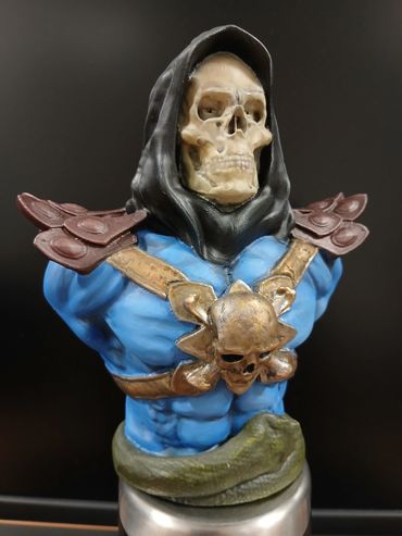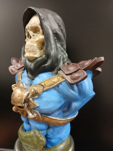 Unbranded 3d Print of Skeletor from the comic/film Masters of The Universe. The blue skin tone and shadowing were done in artists oil paints. The rest of the figure, including the metallics were all done using Games Workshop acrylics. The figure is 200mm high
