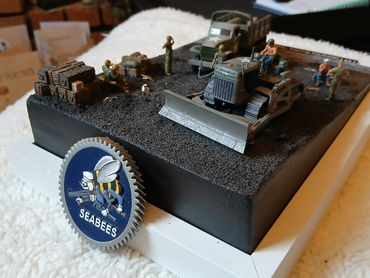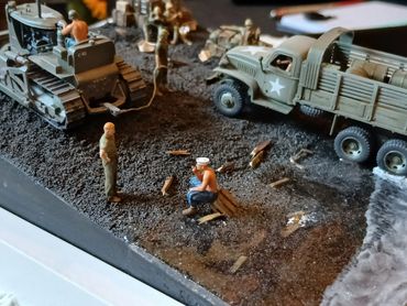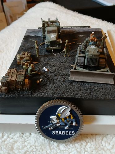 1/72 diorama of USN SeaBees on Iwo Jima 1945. The composition is based upon an actual wartime photo (left) with a slight tweak.