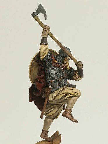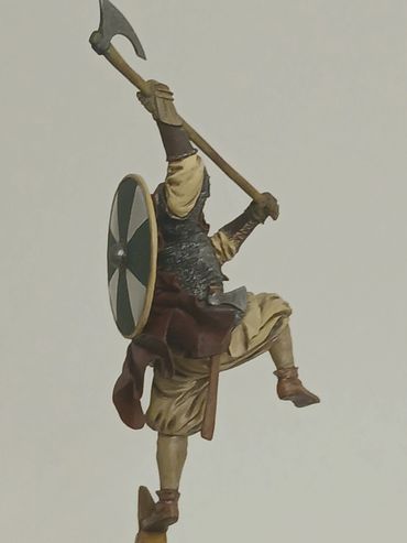 3D Resin Print of Timothee Chalamet' portrayal of Paul Atreides in the 2021 version of 'Dune'. Flesh tones are painted using oils. his desert suit is painted using Games Workshop acrylics, heavily dry brushed using the same range. The pose is taken directly from the film but interestingly the STL vendor changed the hand he is holding the knife in, as he's right handed in the film. The figure stands at 150mm tall.