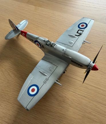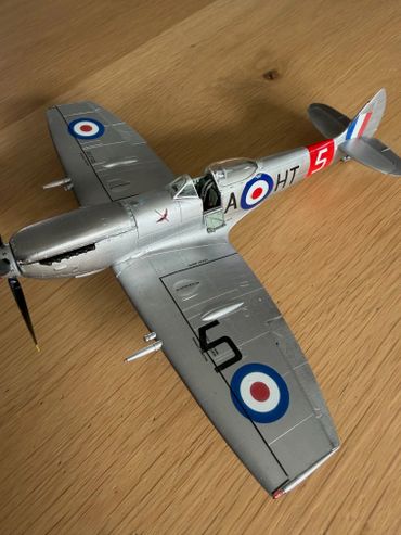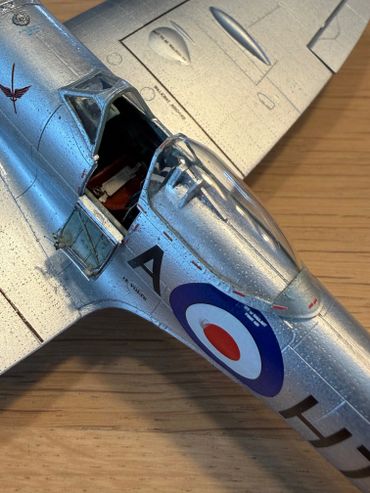 This aircraft took part in the cooper air race of 1949. This is RW393 601 Sqn RAuxAF. The winged sword in front of the windscreen is the 601 squadron crest. This is the Eduard 1/48 Scale kit that was planned to be a weekend build but took a little longer. The build is OOB, the kit came with a photoetch fret included.