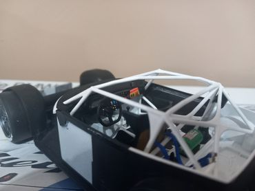 Hasegawa 1/24 BMW 318i from the Japanese Touring Car Championships, 1994. Additions to the basic kit are Seatbelts and Bonnet Pins as well as some wiring and brake bias controls. Carbon Fibre and Kevlar decals were used on the interior